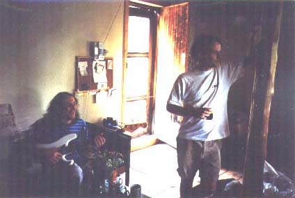 #2:inside the cabin- tim and jon williams (captain of the Vortex ship-our producer/fellow astronaut/sound shaper extraordinaire) during Bourbon County voyage-note morning lambic (framboise, i believe) in Jon's hand--a wakeup Vortex tradition